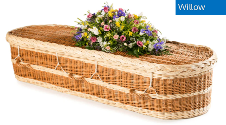 wicker casket. This coffin is fitted with engraved nameplate. Suitable for burial or cremation.