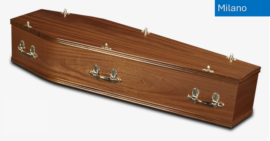 coloured handles. This coffin is fitted with required religious fittings. Suitable for burial or cremation.